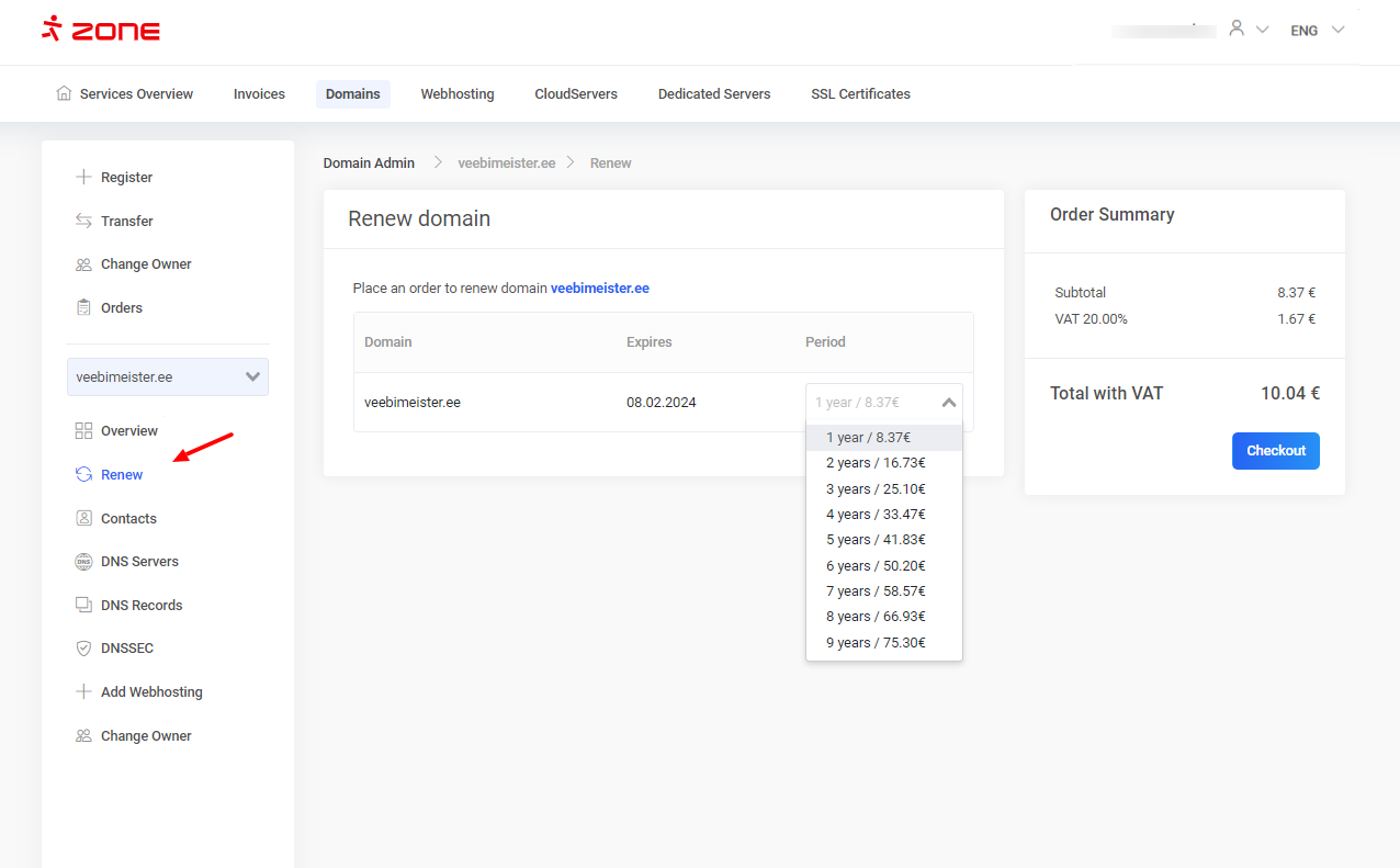 .EE domain’s registration period can be extended up to 10 years
