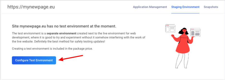 On the opened page, select Staging Environment and click on Configure Test Environment.
