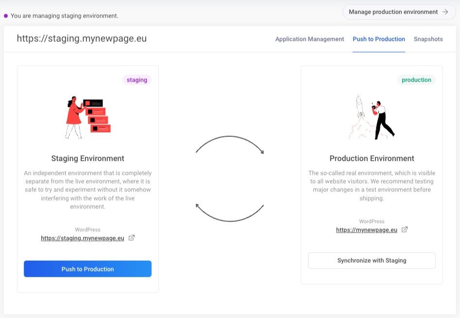 Once the testing environment is set up, you have the option to synchronize one environment with the other. To do this, open Zone+ and click on Settings -> Staging Environment for either the main application or the testing environment application.