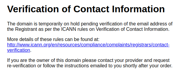 According to ICANN rules, the contact details associated with a domain require verification.