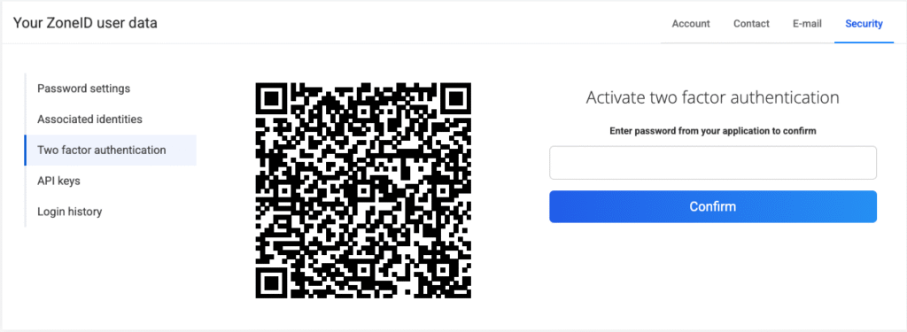 Vēl viens ieteicams veids, kā nodrošināt piekļuvi jūsu ZoneID kontam, ir piesaistīt to divu faktoru autentifikācijas rīkam (TOTP 2FA), piemēram, izmantojot lietotni Google Authenticator savā viedtālrunī (lejupielādes saites: Android un Apple).