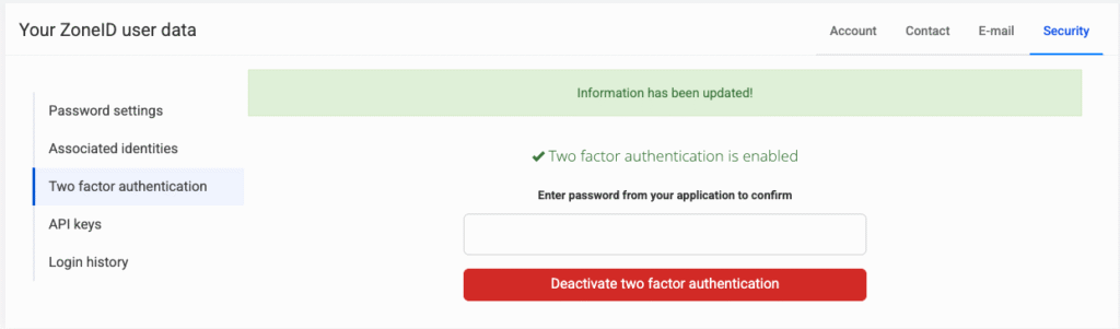 Ja esat piesaistījis savu ZoneID kontu kādam no iepriekš minētajiem autentifikācijas rīkiem, ir iespējams pieteikties kontā bez paroles. Turklāt ieteicams atspējot autentifikāciju ar paroli.