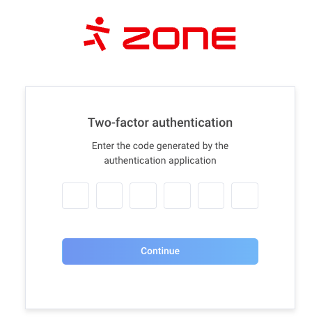 Turpmāk katru reizi, kad piesakāties savā ZoneID kontā, papildus parolei jums būs jāievada 2FA kods, ko varat iegūt tālruņa autentifikācijas lietotnē. Šādā gadījumā pieteikšanās lapa izskatās šādi: