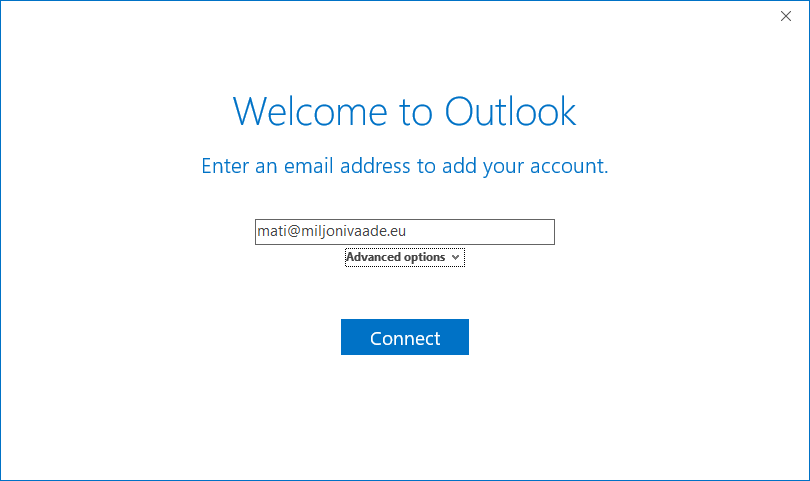 2. Izvēlies Advanced options un atzīmē Let me setup up my account manually.