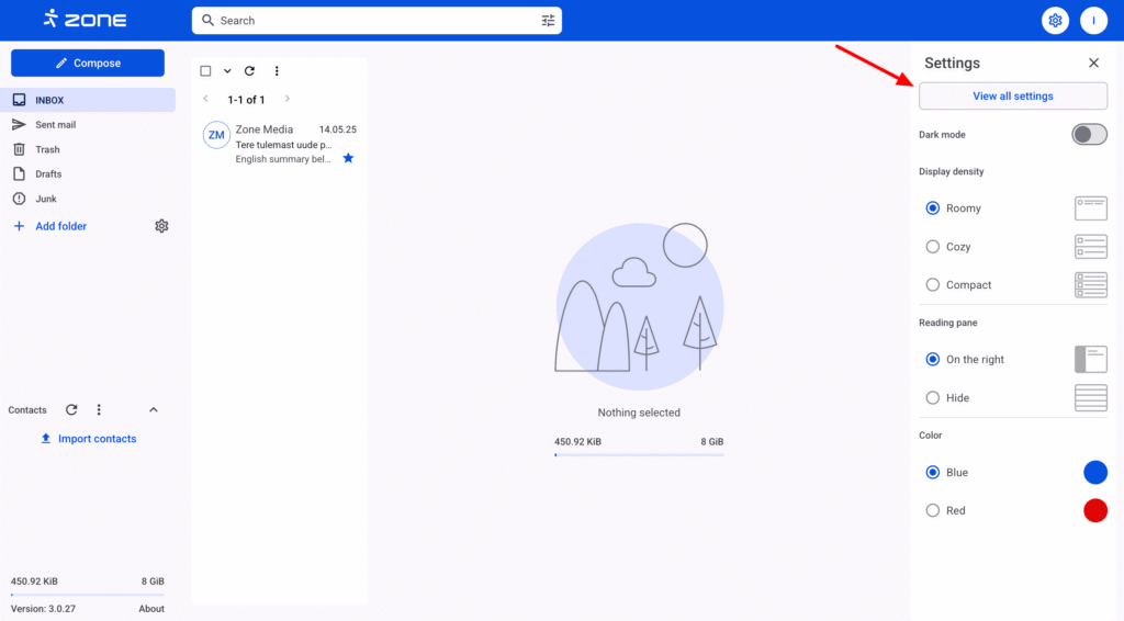 Augšējā labajā stūrī noklikšķiniet uz zobrata ikonas un izvēlieties Skatīt visus iestatījumus.