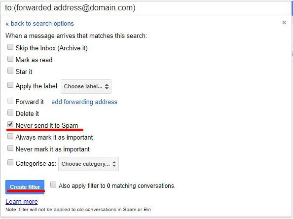 Lai no tā izvairītos, gmail.com var iestatīt filtrus, lai šie ziņojumi tiktu piegādāti. Filtrā jānorāda adrese, no kuras ziņojumi tiek pārsūtīti uz gmail.com kontu.