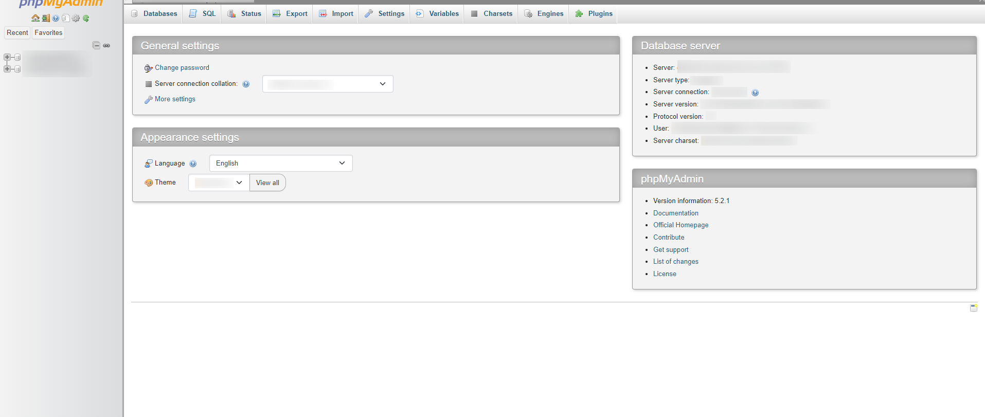 Piekļuve phpMyAdmin, izmantojot servera pārvaldību