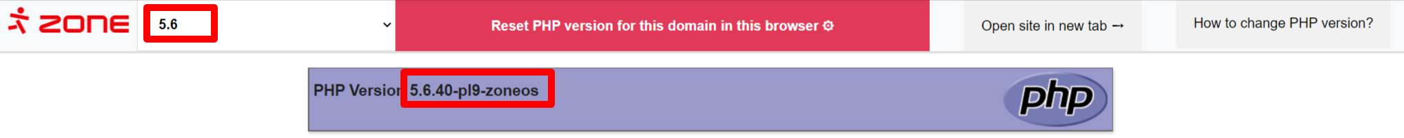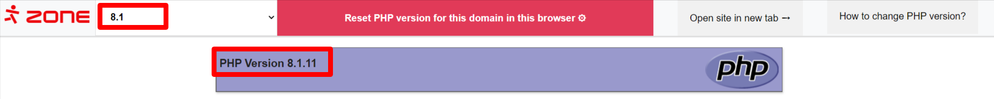 PHP versijas maiņa serverī var aizņemt līdz 3 minūtēm. Lai pārbaudītu, kura versija pašlaik tiek izmantota, pievieno .php failu ar nejaušu nosaukumu savas vietnes saknes mapē htdocs, kurā ir: