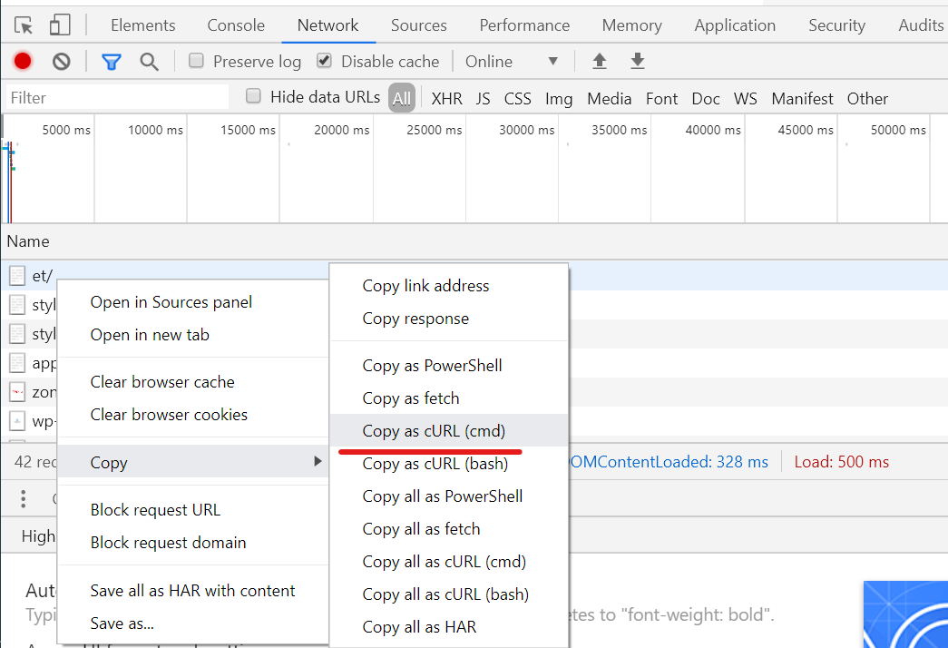 Copy→Copy as cURL (cmd). (Edge pārlūkā:Copy request headers).