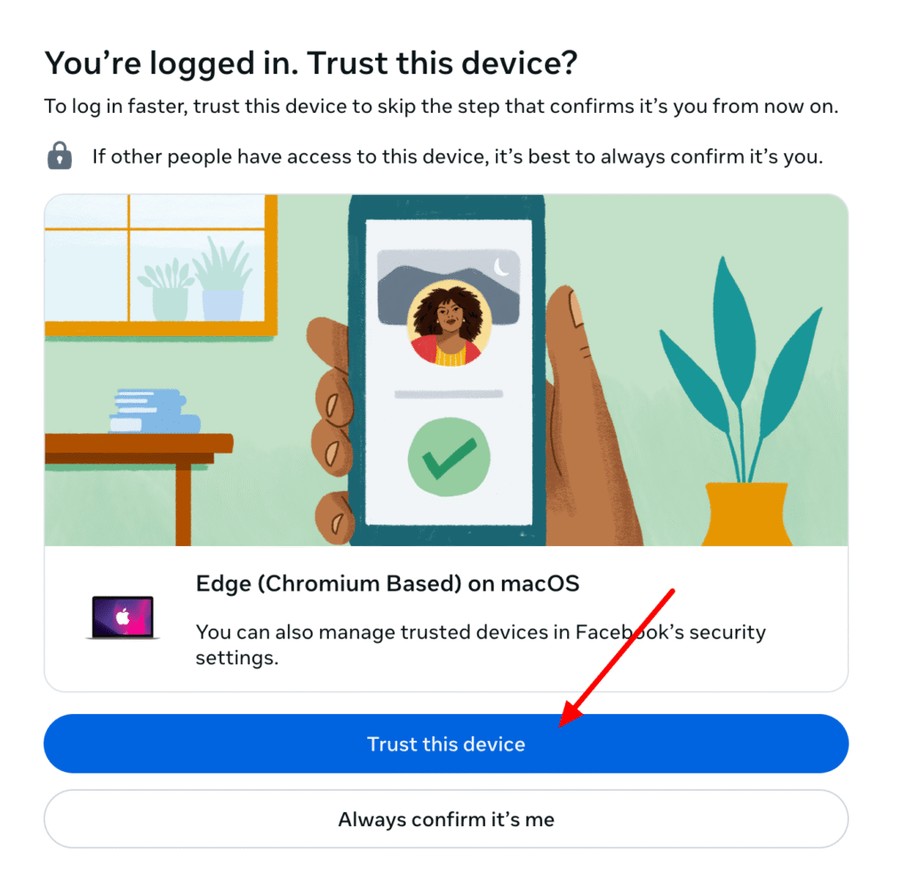 Ja tavā Facebook kontā ir aktivizēta 2FA, tev papildus būs jāapstiprina pieteikšanās citā ierīcē vai jāizvēlas cita verifikācijas metode.