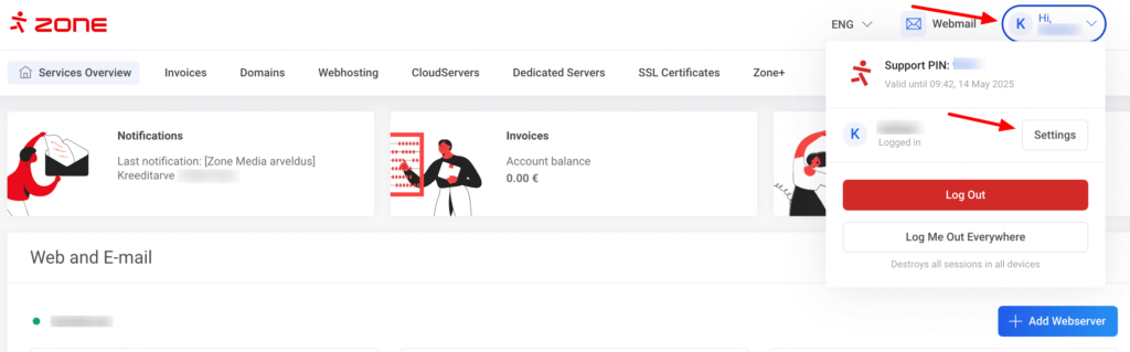 Izveidojot ZoneID kontu, klients iestata sava konta lietotājvārdu un paroli. Paroli vēlāk var mainīt My Zone sadaļā Settings -> Security ->Password settings.