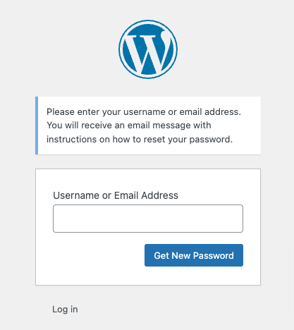 Noklikšķinot uz pogas Get New Password, un ja ir ievadīts pareizs lietotājvārds vai e-pasta adrese, tiks nosūtīts e-pasts ar saiti, lai iestatītu jaunu paroli.