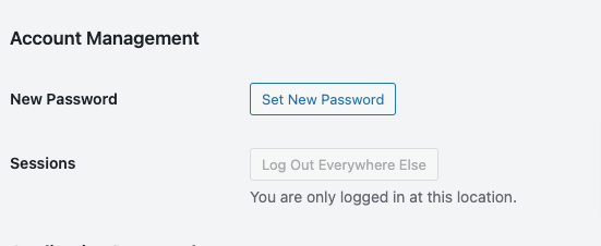 Profila lapā ritini uz leju, līdz zem Account Management atrodi pogu Set New Password.