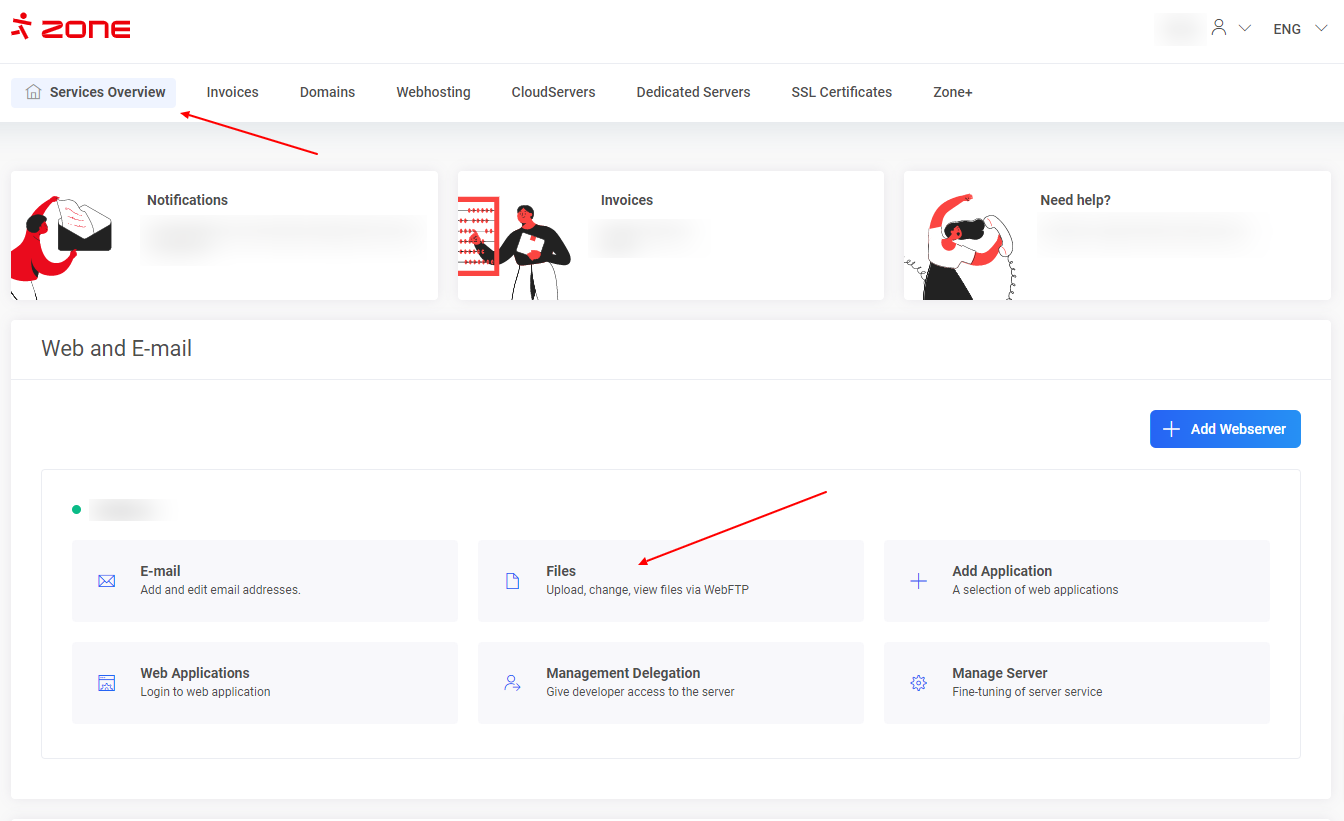 Tev būs nepieciešami lietotāja piekļuves dati, lai piekļūtu datubāzei. Tos vari atrast failāwp-config.php, piekļūstot caur WebFTP vai FTP.My Zone ->Services Overview -> Files (tas atvērs WebFTP).