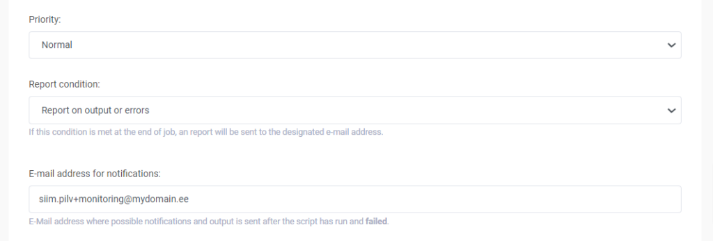 Sistēmas cron veiktspēju vari pārbaudīt, liekot cron sūtīt sev e-pasta paziņojumus par izvadi un kļūdām. To var izdarīt attiecīgā cron uzdevuma iestatījumos: