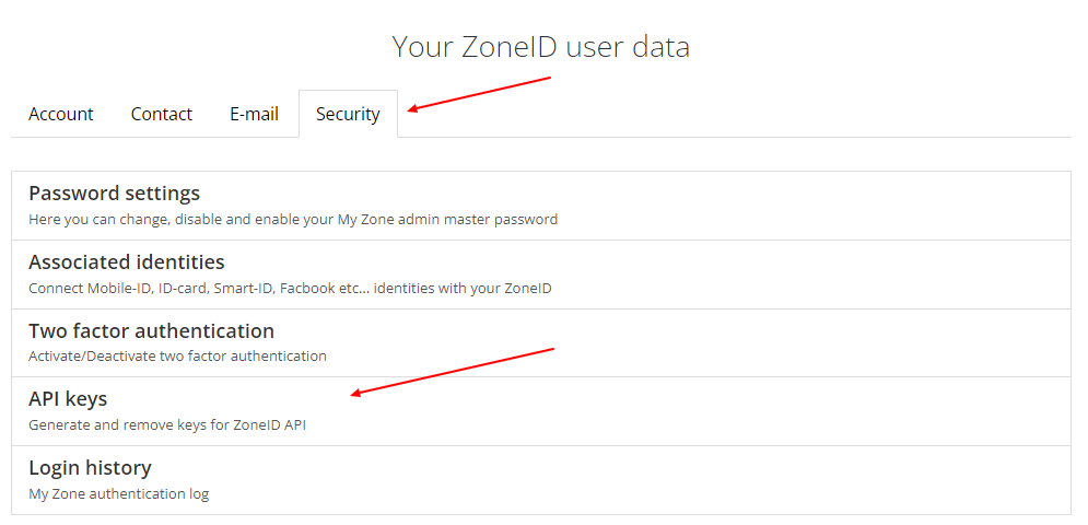 API autentifikācija tiek veikta, izmantojot metodi “HTTP basic auth”, kur lietotājvārds ir ZoneID konta nosaukums, bet parole — API atslēga.
