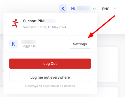 API atslēgu var ģenerēt, piesakoties My Zone un augšējā labajā stūrī izvēloties Settings: