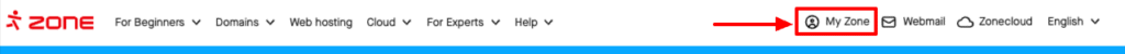 Lai reģistrētu ZoneID kontu, Zone galvenajā lapā augšējā labajā stūrī izvēlies My Zone.