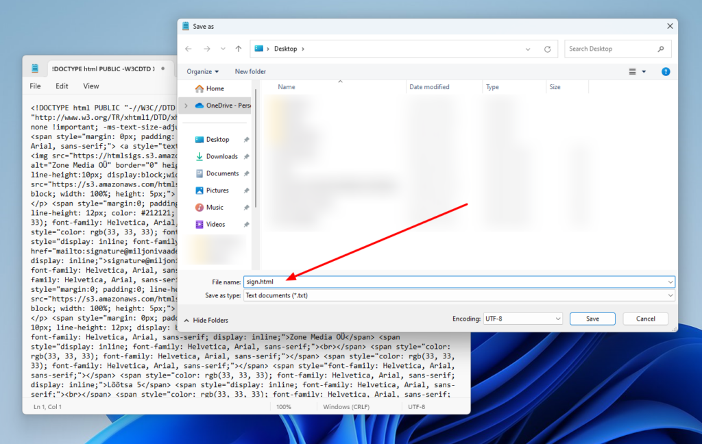 Скопируйте HTML-код в текстовый редактор, например Notepad.
