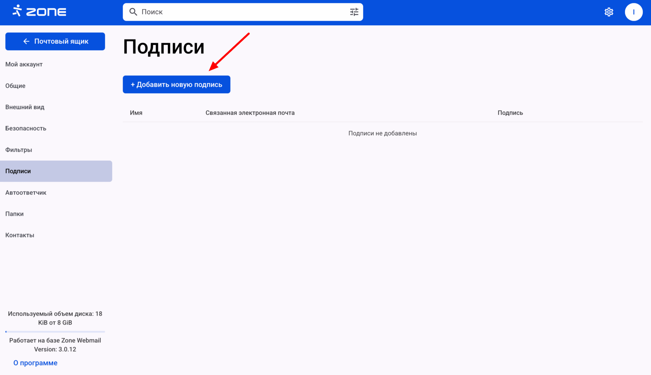Для того, чтобы добавить новую подпись, нажмите кнопку Добавить новую подпись.