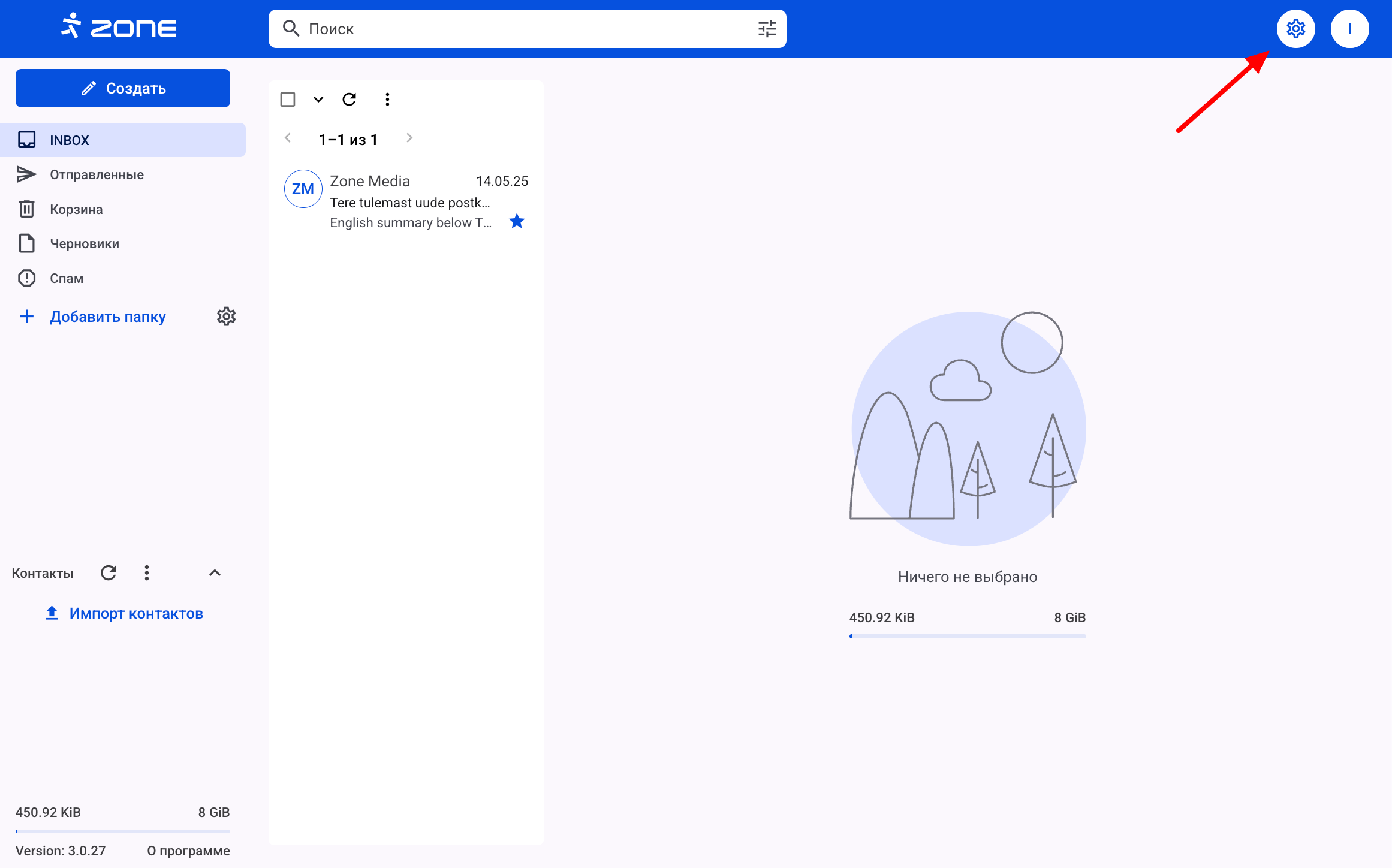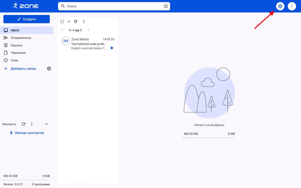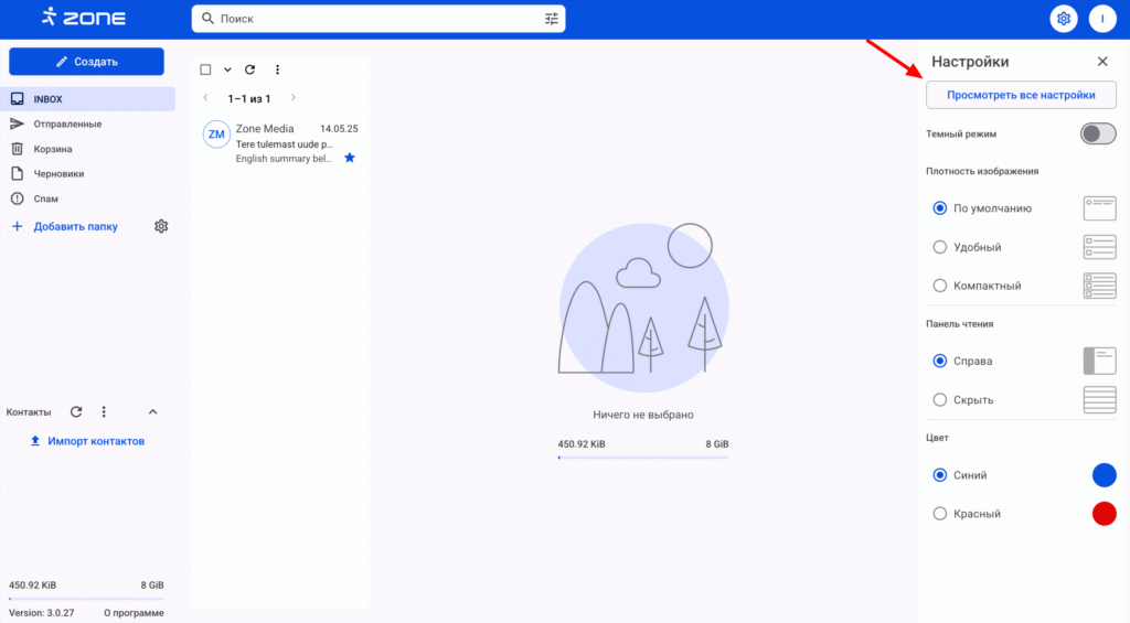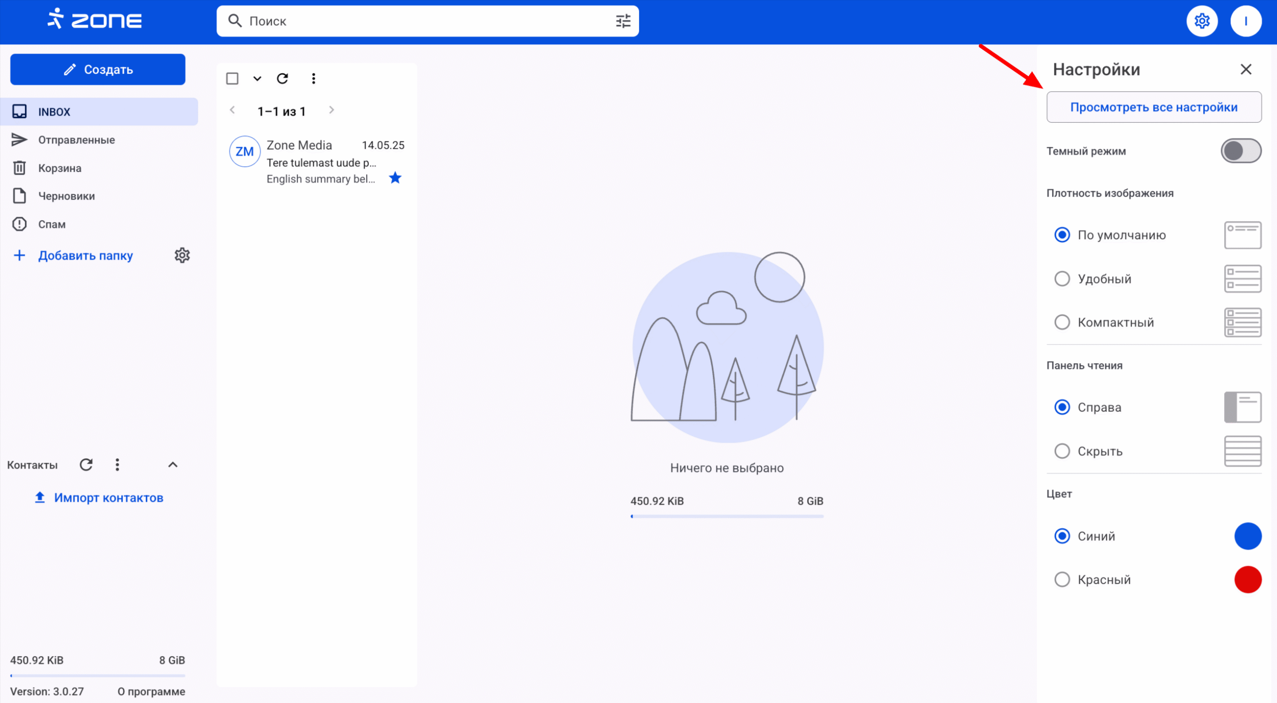 Для настройки автоответчика почтового ящика пожалуйста войдите в Zone Webmail и В верхнем правом углу нажмите на иконку с шестеренкой и Посмотреть все настройки.