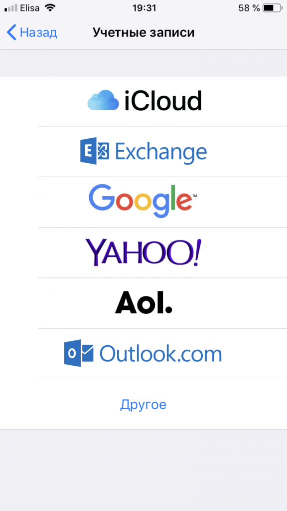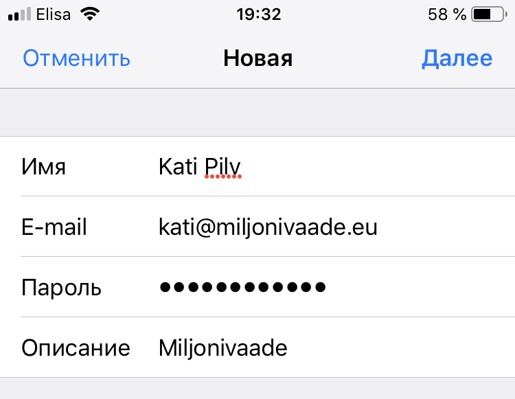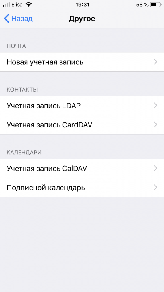 1. Выберите в меню телефона Настройки, Почта, Учетные записи, Добавить учетную запись, Другое, Новая учетная запись.
