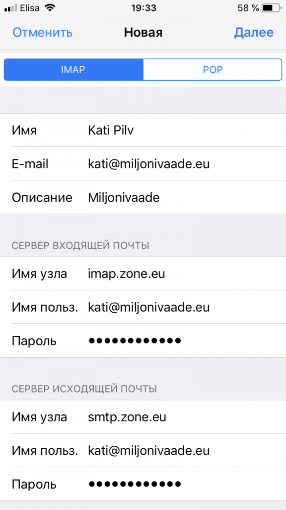 - Сервер входящей почты т.е. IMAP сервер: imap.zone.lv порт 993