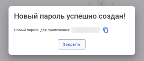 После этого будет показан только один раз пароль приложения. Данный пароль увидеть повторно невозможно! Введите данный пароль сразу же в ваше приложение и ни в коем случае не записывайте его никуда!