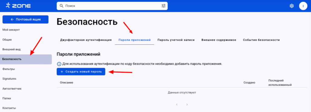 Для добавления пароля приложения, войдите в свой почтовый ящик по адресу webmail.ee.