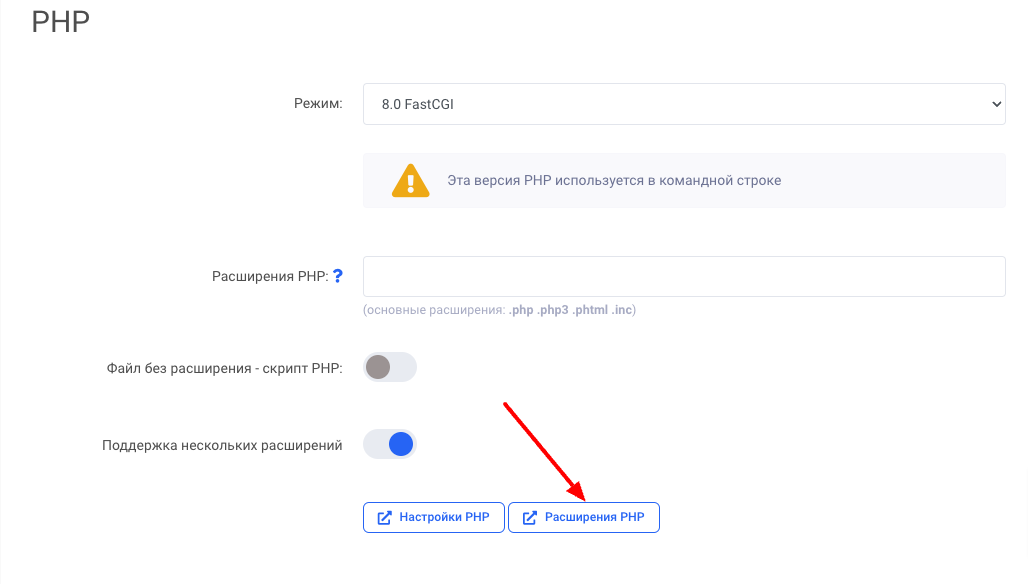 Чтобы активировать расширения PHP, выберите Вебсервер -> Настройки главного домена, а затем выберите изменить.