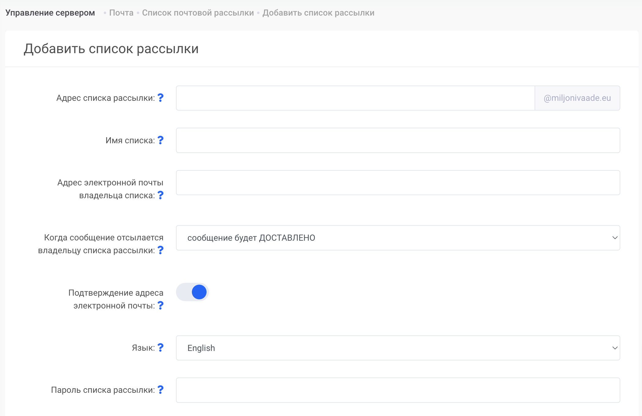 Язык: Системные сообщения будут отсылаться владельцу и участникам списка на выбранном языке.