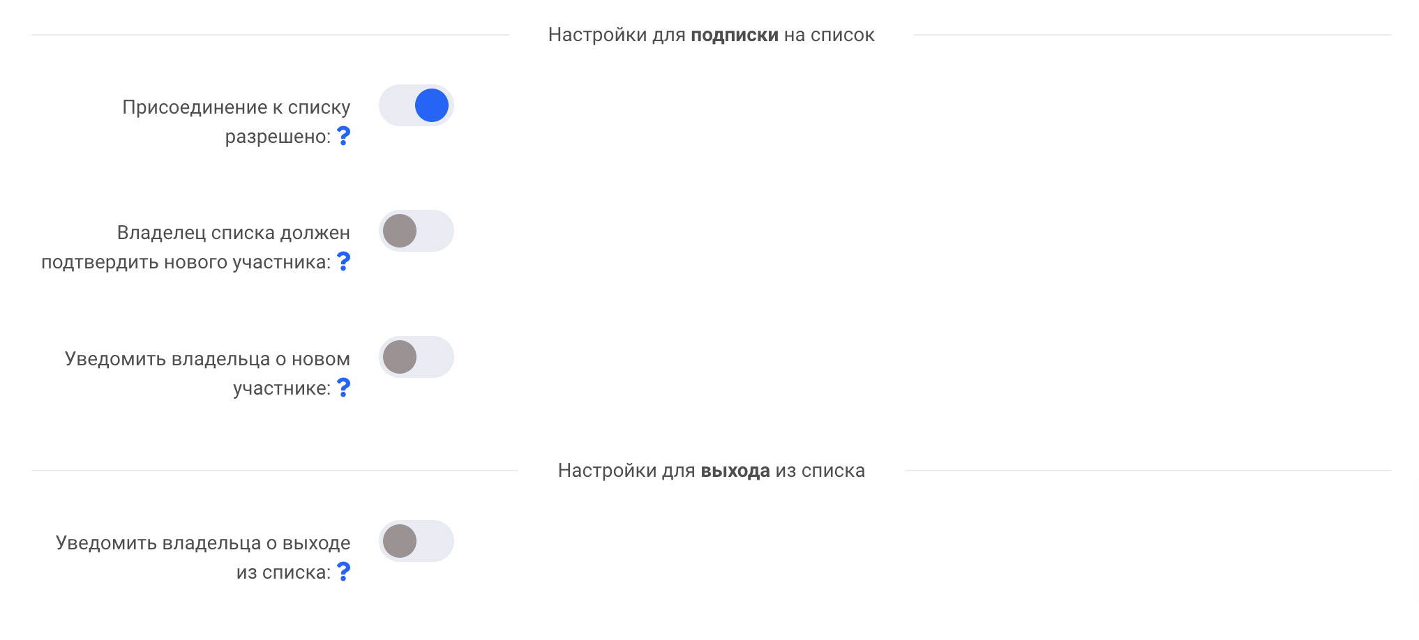 Владелец списка должен подтвердить нового участника: если выбрать ДА, то владелец списка рассылки должен проверить вручную всех, желающих автоматически присоединиться к списку, до того, как они попадут в список рассылок и подтвердить или отклонить нового участника из среды управления.