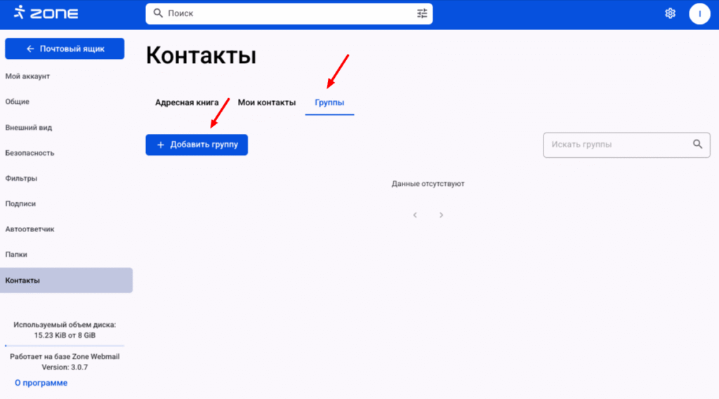 После создания адресной книги перейдите в раздел Мои контакты и нажмите Добавить контакт.