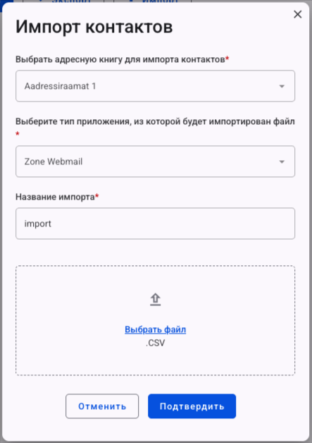 Управление контактами Webmail.ee (импорт, экспорт, адресные книги)