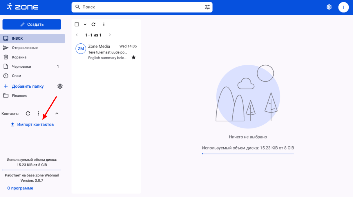 В веб-почте Zone можно добавлять и сохранять контакты.