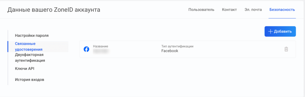 Чтобы подключить Facebook к вашему аккауны ZoneID, войдите в панель управления Мой Zone под своим именем пользователя и паролем, затем перейдите в Настройки > Безопасность. Введите свой пароль еще раз.