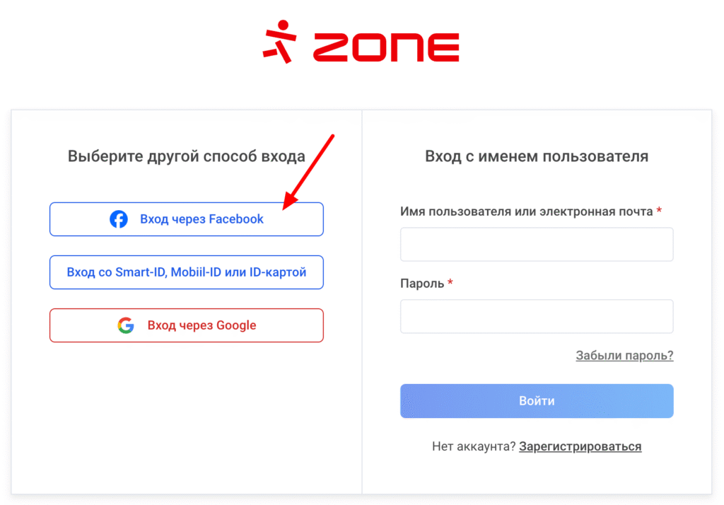Чтобы войти через Facebook, выберите Мой Zone в правом верхнем углу сайта Zone.