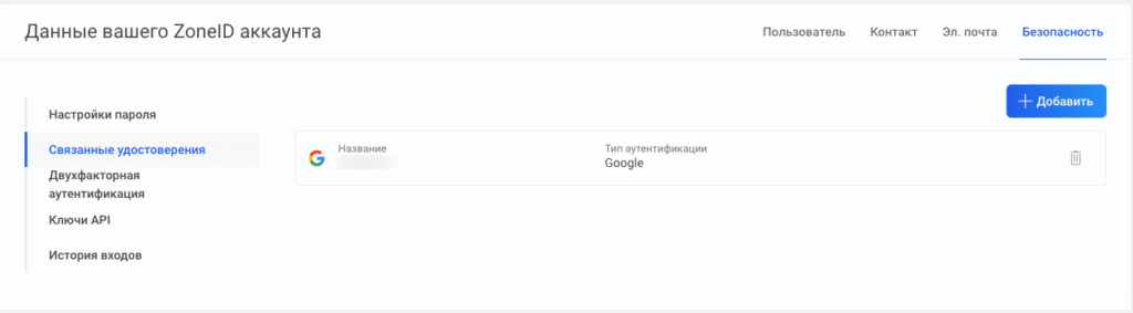 Чтобы подключить Google к вашему аккауны ZoneID, войдите в панель управления Мой Zone под своим именем пользователя и паролем, затем перейдите в Настройки > Безопасность. Введите свой пароль еще раз.