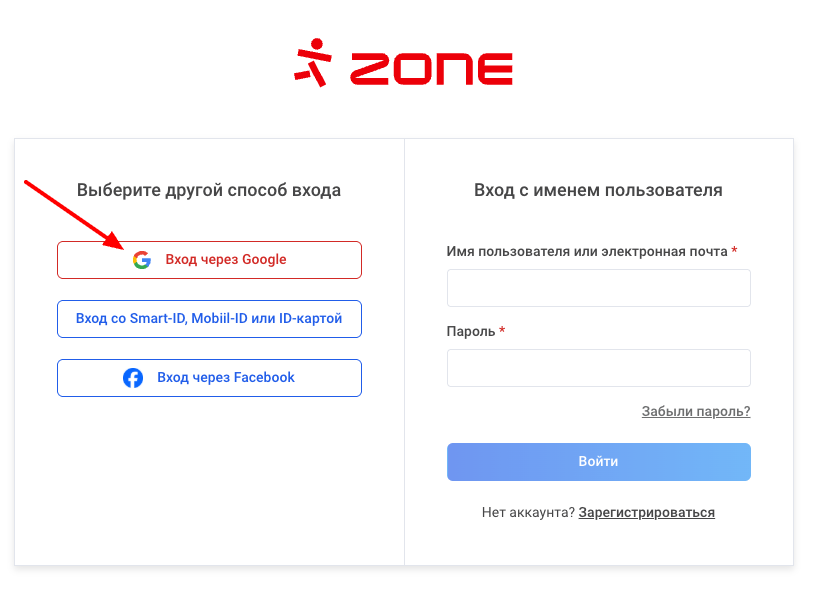 Чтобы войти через Google, выберите Мой Zone в правом верхнем углу сайта Zone.