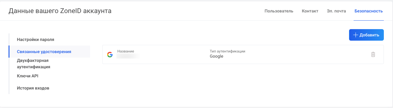 Чтобы подключить Google к вашему аккауны ZoneID, войдите в панель управления Мой Zone под своим именем пользователя и паролем, затем перейдите в Настройки > Безопасность. Введите свой пароль еще раз.