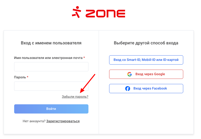 Для этого откройте страницу входа в Мой Zone и слева внизу выберите Забыли пароль?.