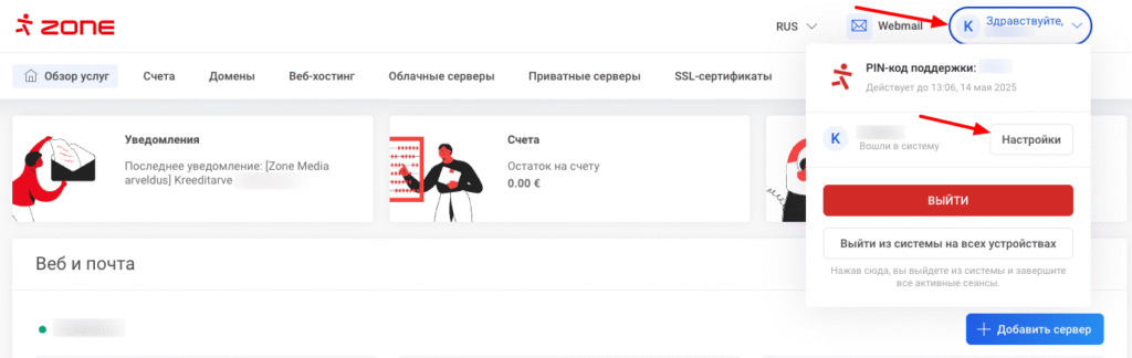 Поскольку заказывать услуги и управлять ими можно с помощью учетной записи ZoneID, крайне важно установить надежный пароль для этой учетной записи.