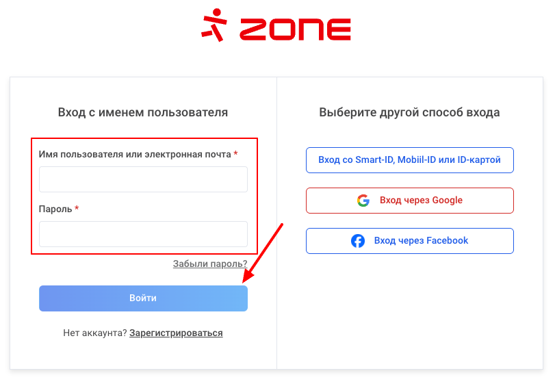 Введите имя пользователя и пароль аккаунта ZoneID и нажмите войти.