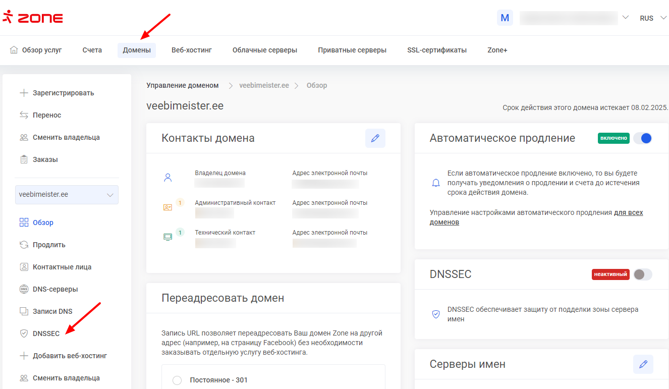 Для этого войдите в Мой Zone, выберите соответствующий домен в меню Домены, щелкните на нем и в левом меню нажмите на DNSSEC.